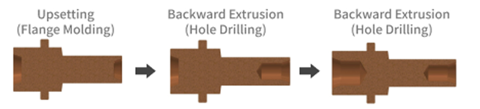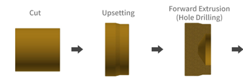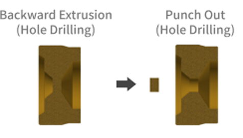 When the material is placed in a die and a force is applied with a small punch against the die material diameter, the material escapes into the gap between the die and the punch, resulting in a cup-shaped shape. Used for forged parts machining and press-forged parts machining, such as caulked parts of rivets.
