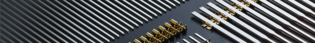 Terminals are mounted on a carrier band and supplied on reels, ensuring precise alignment. We offer band dimensions tailored to connector housing pitches, enabling an increased number of pins to be inserted simultaneously during assembly. This contributes to improved takt time on production lines. Compared to press terminals, bandolier terminals also offer significant reductions in initial die costs and allow plating on all four sides of the terminal.