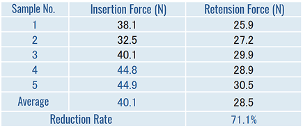 The following shows an example of insertion force and retention force with a printed circuit board for evaluation.