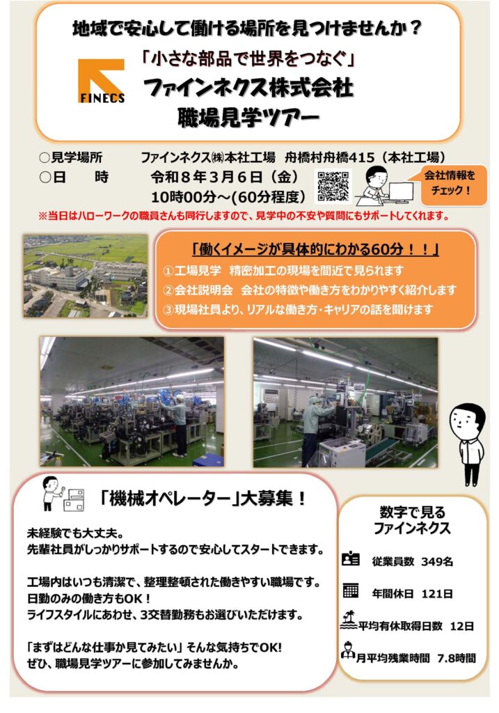 このたび、ハローワーク滑川主催の「企業見学ツアー」を開催することとなりました!