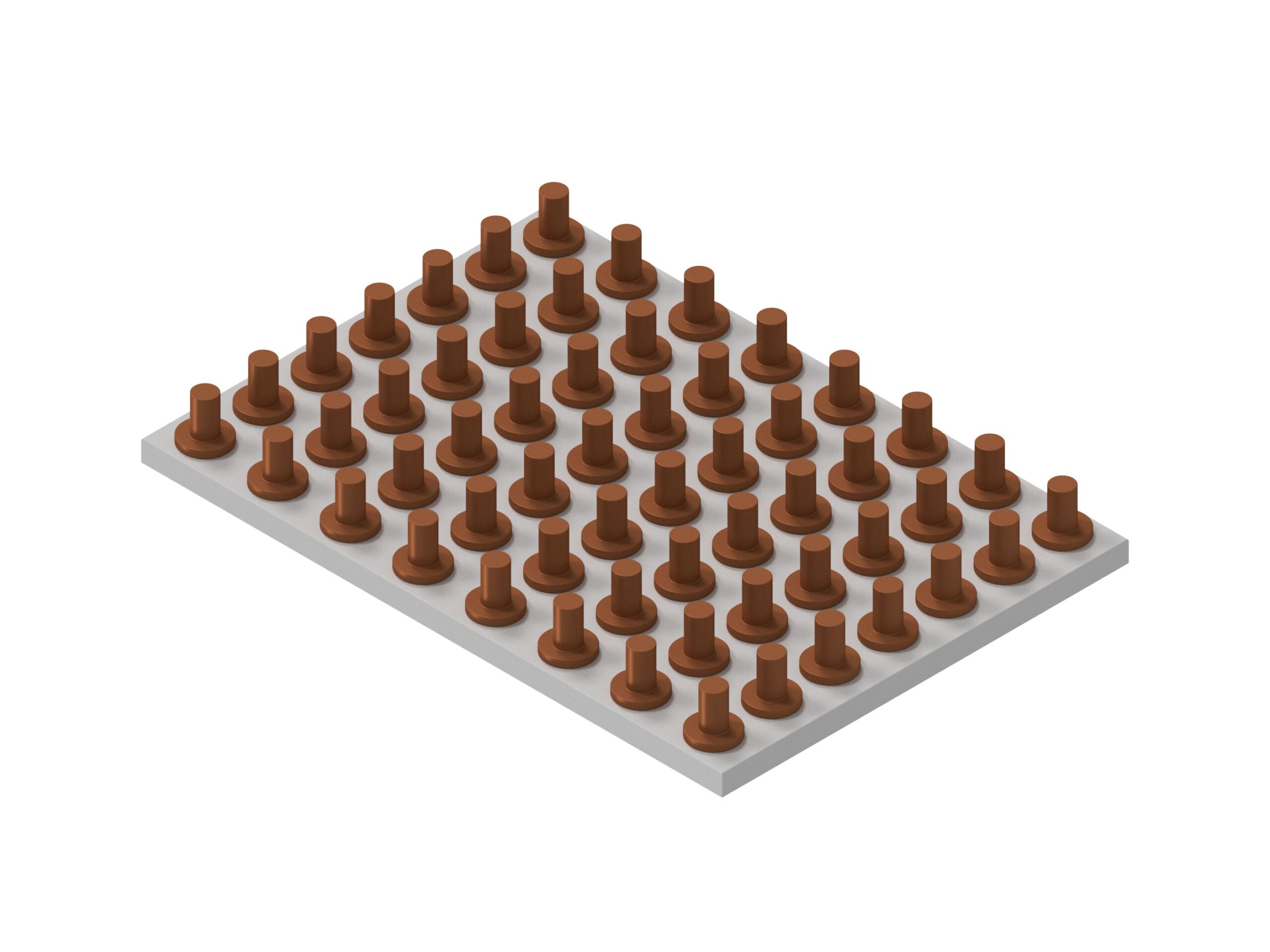 当社のヒートシンク用放熱ピン・放熱端子は、金属線材を圧造加工して、ご要望の形状へ加工しますので、押し出し成形品と比べて、金型費用を安く抑えることが可能です。丸線をヘッダー加工したピンのヘッダー部を、放熱板にろう付けして接合することによりヒートシンクとなります。放熱ピンの長さ、放熱板上でのレイアウトが自由です。放熱性の高い全長の長い端子も製作可能です。