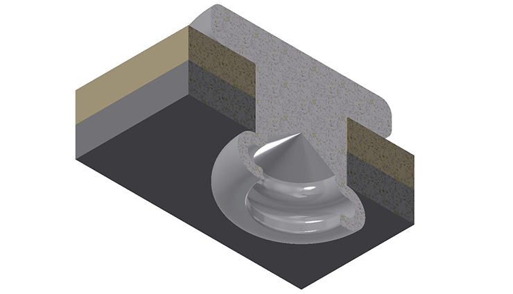 十字つぶしスウェージング入りL曲げ(角錐テーパ) -