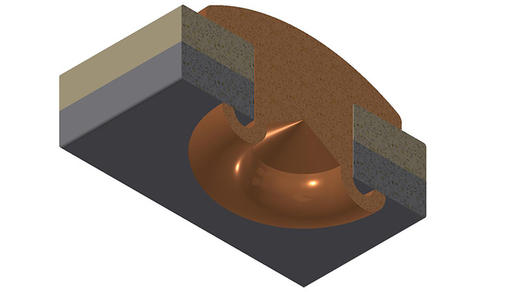 金属板や型材などの締結(かしめ)に使う部品です。頭部と軸部からなるシングルヘッダーの形をしています。重ね合わせた材料に穴をあけてさし込み、はみ出た軸部の端をつぶして締結(かしめ)します。頭部の形により、丸、平、さらなどに分けられます。形状の作成にあたり、切削からではなく、線材から冷間鍛造加工、ヘッダー加工によりお客様に貢献いたします。
