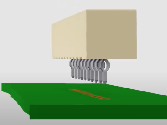 プレスフィット端子は、圧入による簡便な方法で基板に搭載することが出来る事から、はんだディップ工程やマウント実装工程、或いはリフロー工程が不要となり、工程の簡素化を図ることができます。