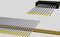 金属線材を整列させ、一括で挿入しコネクタなどの電気接点部として使用される